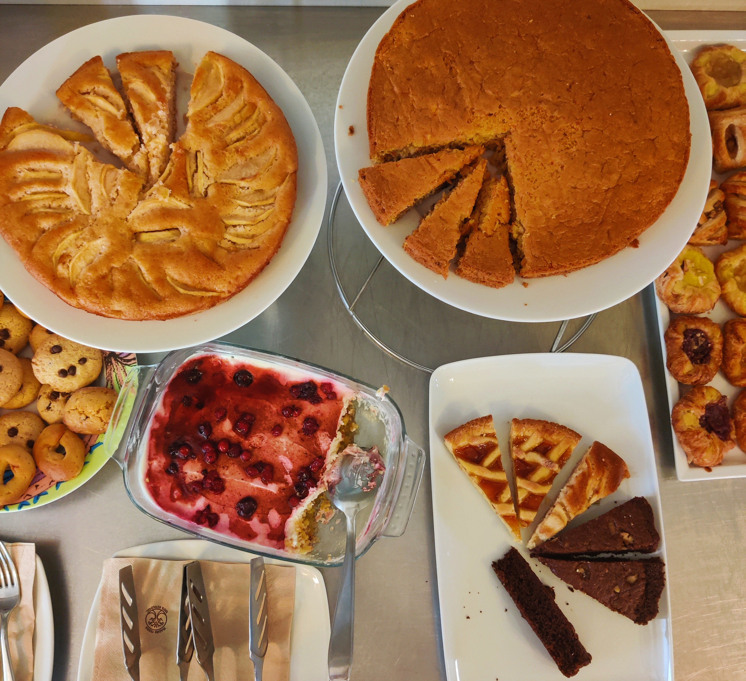 - Un Breakfast che si trasforma in un Brunch: piatti e insalate di frutta, verdura, cereali, frutta secca e muesli; yogurt e latte vegetali; marmellate, miele, succhi, spremute, centrifughe; biscotti e torte sia tradizionali che vegani e tante altre golosità biologiche. Non mancano salumi e formaggi vegani e di origine animale, ma solo ed esclusivamente provenienti da animali allevati all’aperto e con alimentazione naturale e priva di antibiotici. Anche le uova, che usiamo per i nostri dolci fatti in casa e cuociamo in tanti modi, provengono da un’azienda avicola che alleva galline a terra e con mangimi naturali. Per noi il rispetto è anche tener conto delle esigenze alimentari di tutti i nostri ospiti, senza discriminazioni verso alcuno, sempre però sostenendo prima di tutto gli animali.